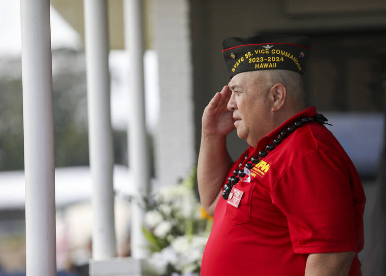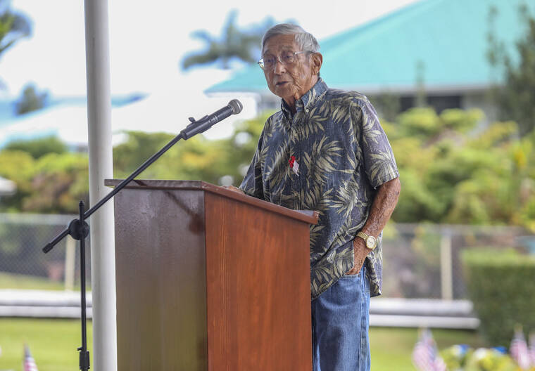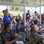 The ceremony was hosted by the Veterans of Foreign Wars Post No. 3830 in Pahoa and its Auxiliary. The air was filled with military marches, courtesy of the Hawaii County Band, speeches — and cheers from perhaps the most American of sporting contests, a nearby youth baseball game.