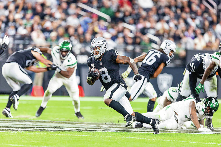 LAS VEGAS (AP) — On a night when Josh Jacobs finally ended his 100-yard dry spell, he couldn’t quite forget the fumble that gave the New York Jets life late in the game.