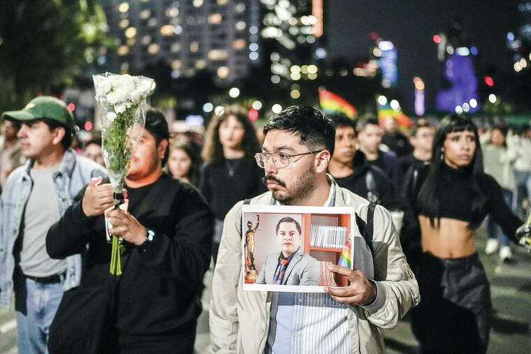 MEXICO CITY — Thousands marched in Mexico’s capital Monday night demanding justice for Jesús Ociel Baena, an influential LGBTQ+ figure who was found dead at home in the central city of Aguascalientes after receiving death threats.
