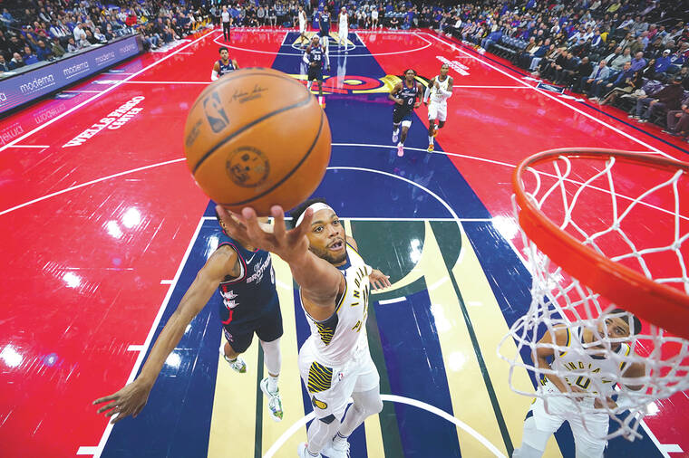 Myles Turner added 17 points for the Pacers, whose bench outscored Philadelphia’s 33-6.