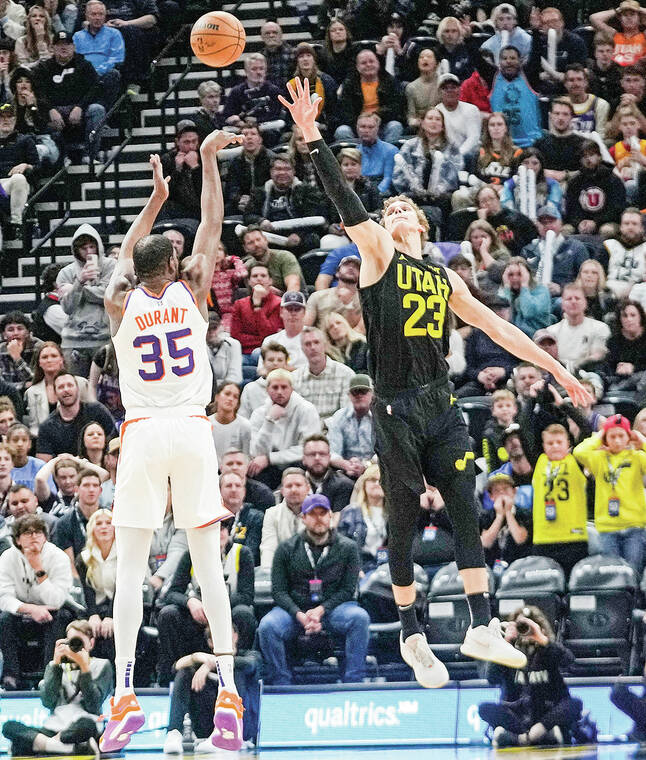 SALT LAKE CITY (AP) — Kevin Durant totaled 39 points, 10 assists and eight rebounds to lead the Phoenix Suns to a 140-137 double overtime win over the Utah Jazz on Sunday night.
