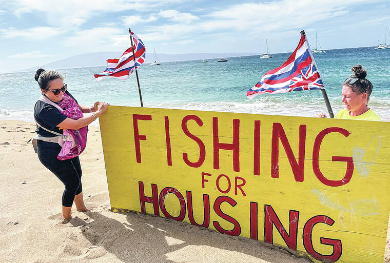 LAHAINA, Maui (AP) — A group of Lahaina wildfire survivors is vowing to camp on a popular resort beach until the mayor uses his emergency powers to shut down unpermitted vacation rentals and make the properties available for residents in desperate need of housing.