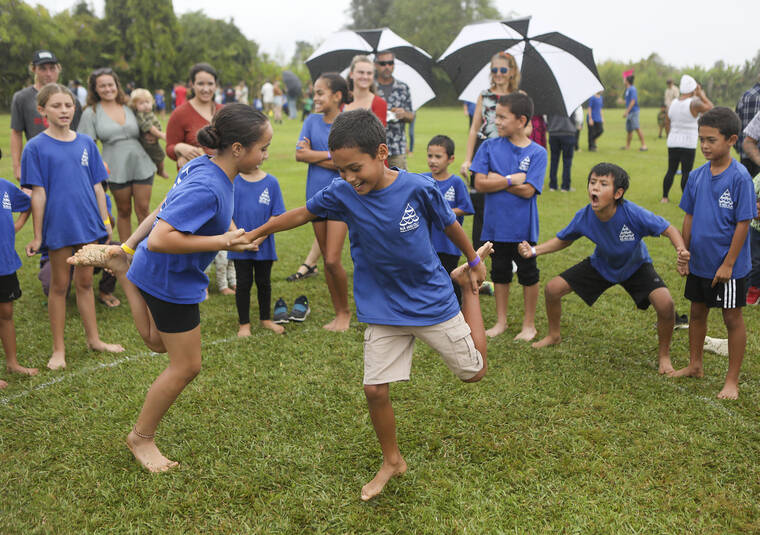 A light rain refreshed keiki on Wednesday they played traditional Hawaiian games to celebrate Makahiki.