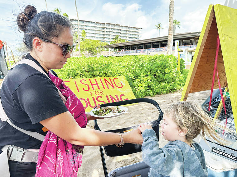 Lahaina Strong launched a grassroots effort, “Lahaina Strong Hui: Fishing for Dignified Housing,” on Nov. 10 on the public access portion of Kaanapali Beach in front of Whaler’s Village and West Maui hotels. The group said it plans to keep fishing poles and overnight tents on the beach until Maui Mayor Richard Bissen and Green used their legal authority to convert short-term rentals into interim longer-term housing.