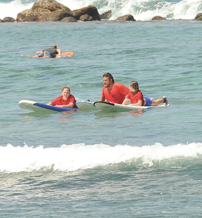 Visitors learn to surf at Kahaluu Beach. (Laura Ruminski/West Hawaii Today file photo)