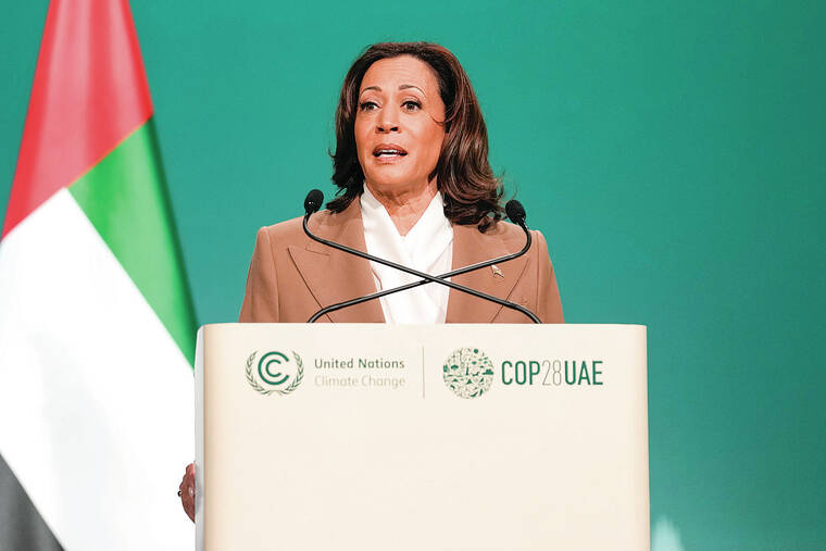 Filling in for President Joe Biden, Vice President Kamala Harris flew to the Middle East to tackle a pair of challenges that have flummoxed White Houses for decades: climate change and the Israeli-Palestinian conflict. Each carries the risk of political blowback going into next year’s presidential elections.