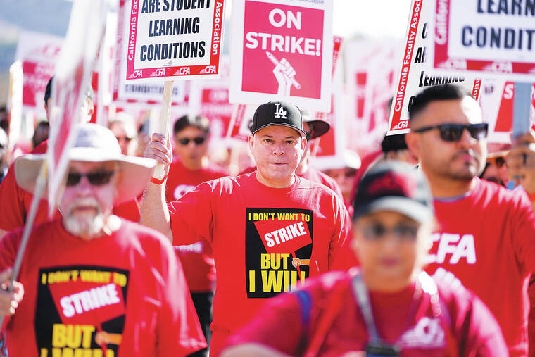 SACRAMENTO, Calif. (AP) — Faculty at California State University, the largest public university system in the U.S., kicked off a series of one-day strikes starting Monday across four campuses to demand higher pay and more parental leave for thousands of professors, librarians, coaches and other workers.