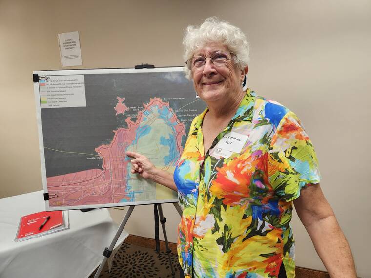 Cannon-Eger and other attendees said the meeting was not addressing a critical point, which one comment left on a whiteboard during the meeting summed up succinctly: “What Florida and Waiakea have in common is that they will both be underwater in 50 years.”