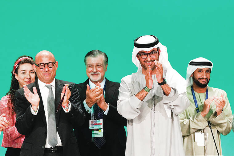 Within minutes of opening Wednesday’s session, COP28 President Sultan al-Jaber gaveled in approval of the central document — an evaluation of how off-track the world is on climate and how to get back on — without giving critics a chance to comment. He hailed it as a “historic package to accelerate climate action.”