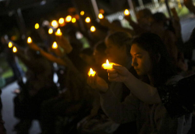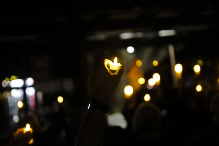 Dozens of people held candles in the air as they honored their deceased loved ones together during Hawaii Care Choices’ first Season of Light candlelight tribute.