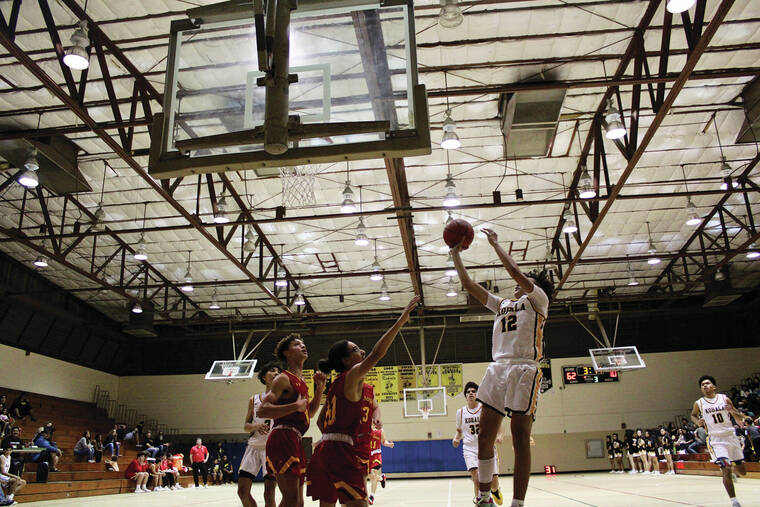 The Cowboys’ aggressive full-court defense was the story of the night, forcing an array of tunrovers which led to easy baskets in transition. Layden Kauka, Jayden Hook and Hezekiah Wilson all helped lead Kohala’s fast-paced game plan — which catapulted the defending state champions to a 38-0 start after the first quarter.