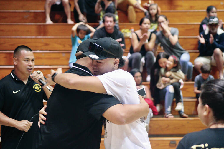 The Cowboys celebrated their second state title in four seasons Wednesday in King Kamehameha Park Gymnasium — awarding rings to the players and coaches from the 2022-23 team. For the seniors who graduated and could not attend, parents accepted the ring in their honor.