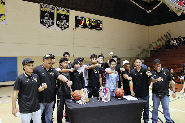 The Cowboys celebrated their second state title in four seasons Wednesday in King Kamehameha Park Gymnasium — awarding rings to the players and coaches from the 2022-23 team. For the seniors who graduated and could not attend, parents accepted the ring in their honor.