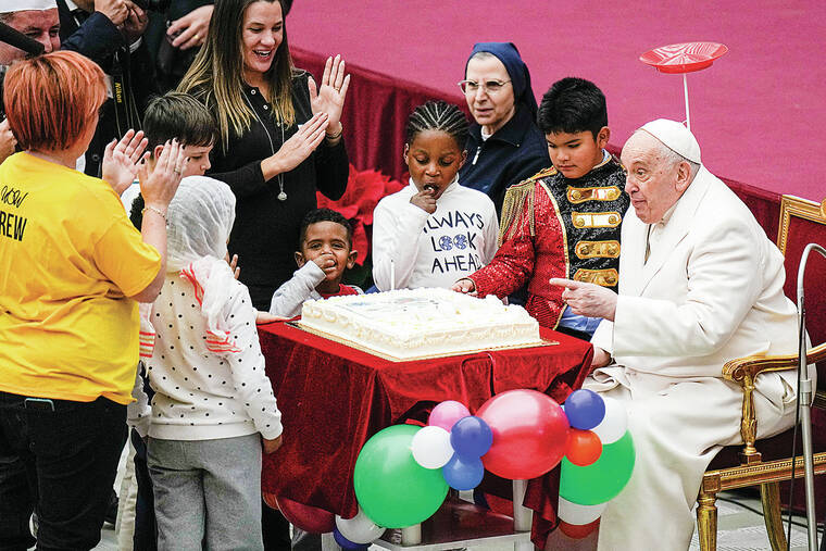 Francis celebrated his birthday with cake during a festive audience with children Sunday morning, and there were “Happy Birthday” banners in St. Peter’s Square during his weekly noon blessing.