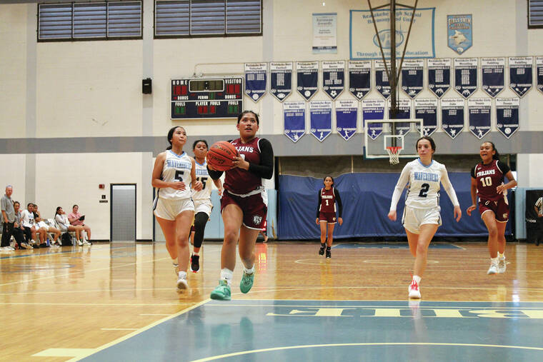 The Waveriders showed improvement from their last loss against KS-Hawai‘i earlier in the week — attacking the rim more consistently and being smarter with taking care of the ball. Nelena Oco and Sarah Broberg had seven points each to lead Kealakehe.