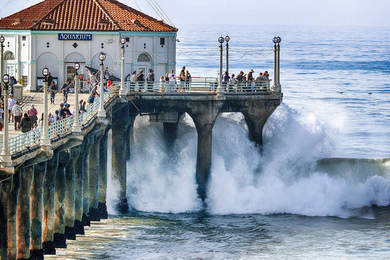 The Los Angeles-area weather office wrote that powerful cyclones over northern Pacific waters were sending 12- to 17-foot (3.6- to 5-meter) swells, creating “tremendous wave energy across coastal waters.”