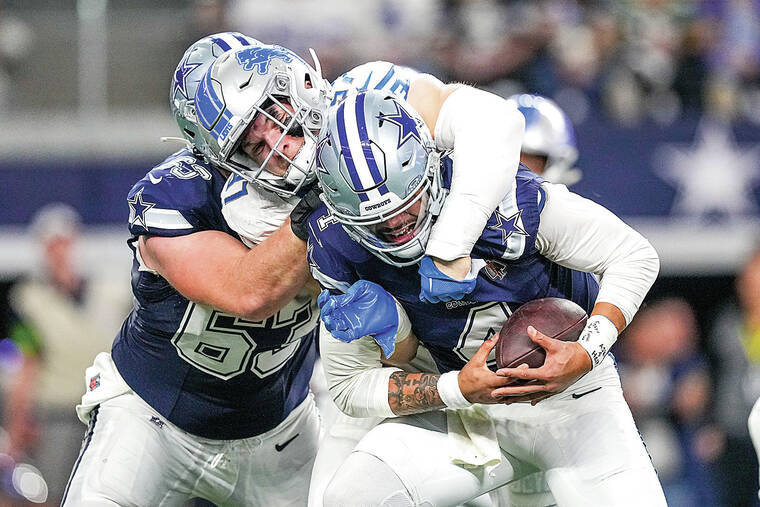 The Lions went for 2 again from the 7-yard line and were stopped on an interception that didn’t even reach the end zone, but the Cowboys were called for offsides.