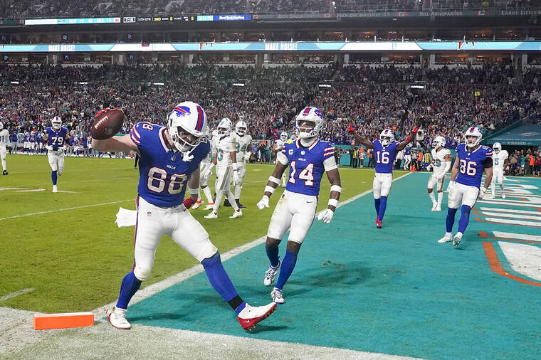 The Bills trailed 14-7 before Deonte Harty returned a punt 96 yards for a touchdown early in the fourth quarter. After Allen’s 5-yard TD toss to Knox, Miami had one last chance, but Taylor Rapp intercepted Tua Tagovailoa with 1:13 left.
