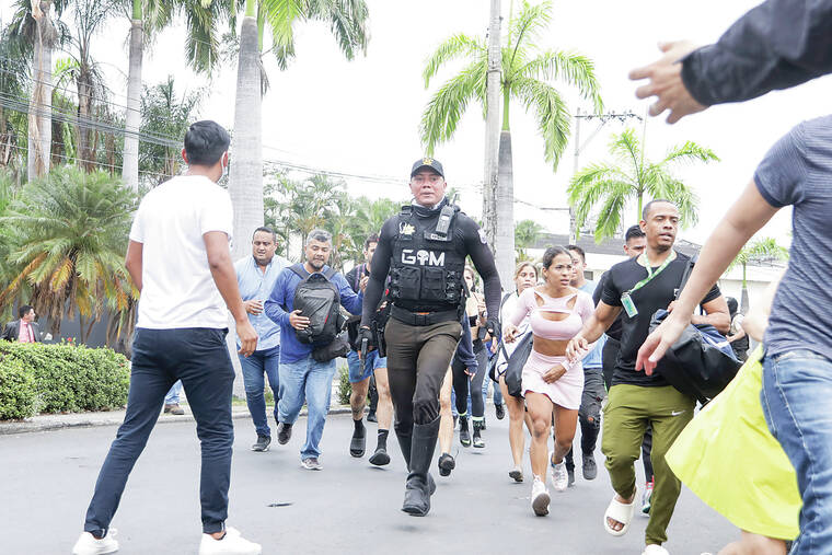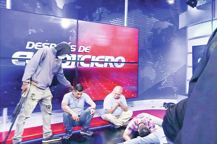 GUAYAQUIL, Ecuador (AP) — Masked men broke onto the set of a public television channel in Ecuador waving guns and explosives during a live broadcast Tuesday, and the president issued a decree declaring that the violence-plagued country had entered an “internal armed conflict.”