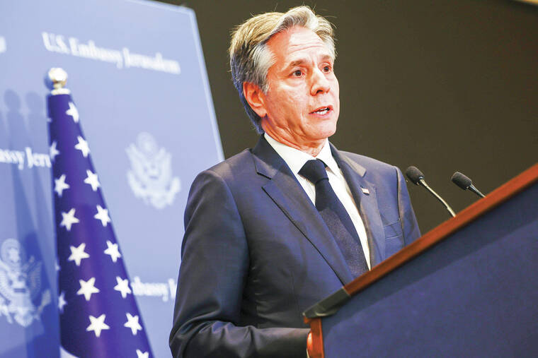 TEL AVIV, Israel — U.S. Secretary of State Antony Blinken on Tuesday called on Israel to work with moderate Palestinians and neighboring countries on plans for postwar Gaza, saying they were willing to help rebuild and govern the territory but only if there is a “pathway to a Palestinian state.”