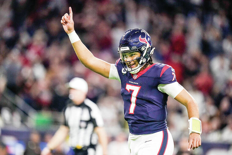The sellout crowd was rowdy and ready for Houston’s return to the postseason after three awful seasons where the team combined for just 11 wins. They chanted “MVP! MVP!” throughout the game when Stroud dropped back to pass.