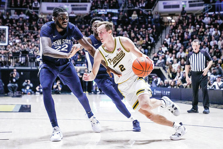 Camden Heide’s 3 with 15:13 left in the half gave Purdue an 11-10 lead and spurred a 31-5 run, forcing the Nittany Lions to take a timeout twice.