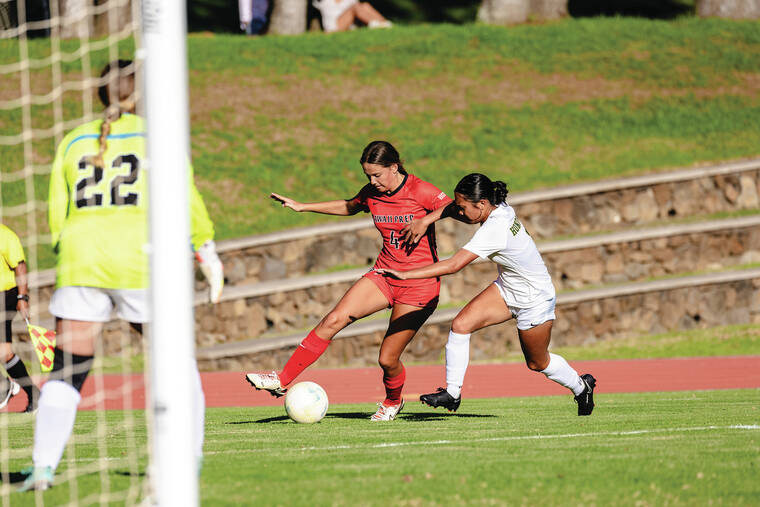 “(Kepoo-DeConte) is our quiet leader in the back,” Hock said. “She’s steady. During the Waiakea game last week she got a bit rattled, but she’s just as mentally strong as Kryslynn up front. They both kind of are our two boundaries on both sides of the field, and I also have (Leililian Solomon Hoopai) in the middle who’s the other heart of the team.”
