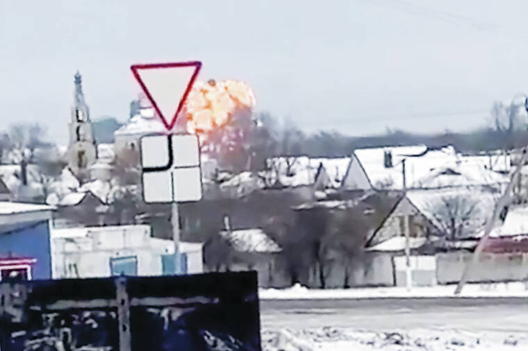 The Russian Defense Ministry said in a statement that the Il-76 transport plane was carrying 65 POWs, a crew of six and three Russian servicemen. Russian radar registered the launch of two missiles from Ukraine’s Kharkiv region that borders Belgorod, the statement said.