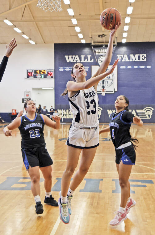 TIM WRIGHT/For the Tribune-Herald Waiakea's Pua'ena Herrington goes for a layup during a game on Monday night in Hilo.