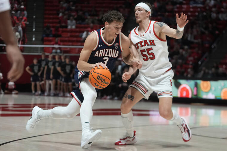SALT LAKE CITY (AP) — Pelle Larsson had 27 points and eight assists to lead No. 8 Arizona to a 105-99 victory over Utah in triple overtime Thursday night.