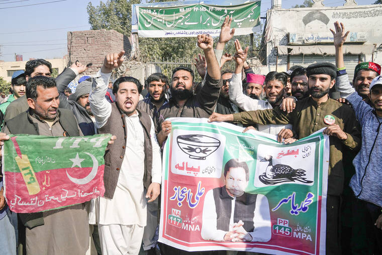 Independent candidates backed by his imprisoned rival, Imran Khan, were leading in the vote count Friday, a surprisingly strong showing given assertions by Khan’s supporters and a national rights body that the balloting was manipulated to favor Sharif.