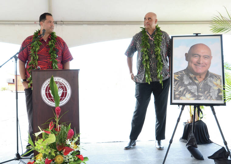 Chants and hula opened the ceremony, with college staff, students, dignitaries and family gathered to share stories about how Freitas, who passed away in 2022, was instrumental in the creation of the Palamanui campus as chancellor at Hawaii Community College in Hilo. He also oversaw the operations of the University of Hawaii Center in West Hawaii for six years from 2004-2010 and was with the University of Hawaii in leadership positions for 23 years.