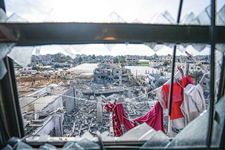 The overnight bombardment brought devastation in Rafah, which is packed with some 1.4 million people, most of whom fled their homes elsewhere in Gaza to escape fighting. Associated Press footage showed a large area of flattened houses, tattered tents and lines of bloodied bodies brought into nearby hospitals.