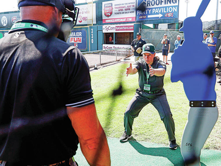 “As a hitter, a longtime athlete, it was a big deal to hit over .300,” the former college softball player said. “But as an umpire, we have to hit 1.000 every night, and the challenge of that is absolutely riveting.”