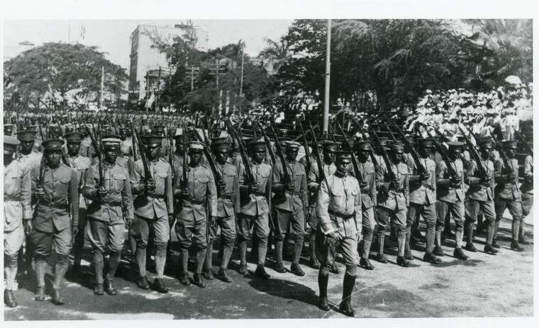 U.S. Army Museum photo of the 25th Infantry Regiment on parade in downtown Honolulu.