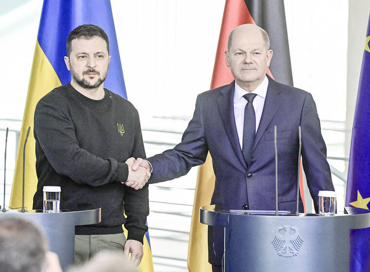 “We will not back down in our support for Ukraine,” he added. Zelenskyy said Germany’s latest shipment of arms — particularly the artillery — would start to reach the front “very soon.”