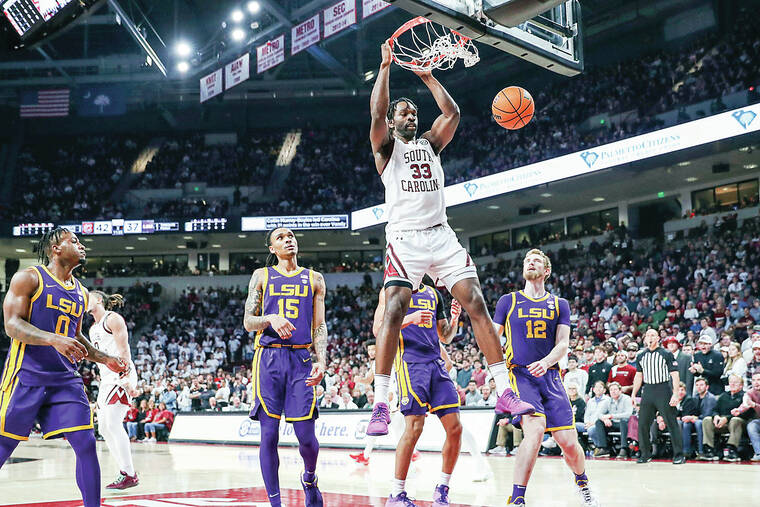 South Carolina (21-5, 9-4) had a final chance, but Jacobi Wright’s 3-pointer from the left corner bounced off the rim.
