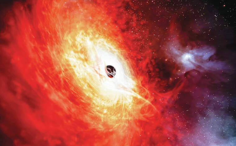 CAPE CANAVERAL, Fla. — Astronomers have discovered what may be the brightest object in the universe, a quasar with a black hole at its heart growing so fast that it swallows the equivalent of a sun a day.
