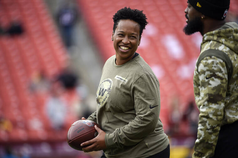 King became the first Black female in NFL history to serve as a primary position coach in 2021 with Washington. She first was hired by Washington in 2020 as an offensive intern, and she spent the past three seasons as an assistant running backs coach.