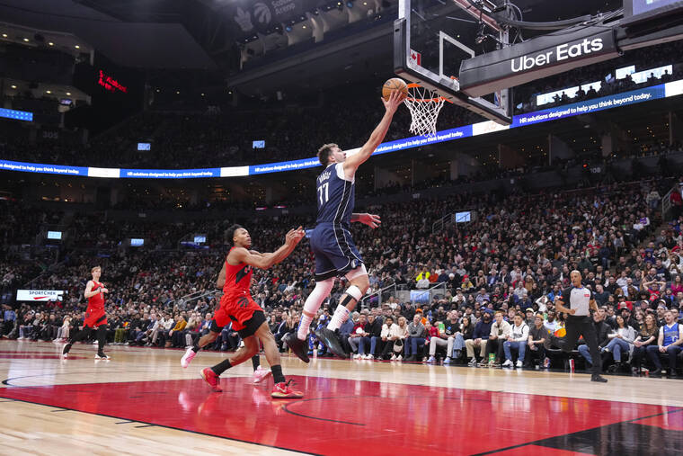 TORONTO — Luka Doncic had 30 points, 16 assists and 11 rebounds on his 25th birthday for his 11th triple-double of the season, Kyrie Irving scored 15 of his 29 points in the fourth quarter and the Dallas Mavericks beat the Toronto Raptors 136-125 on Wednesday night.