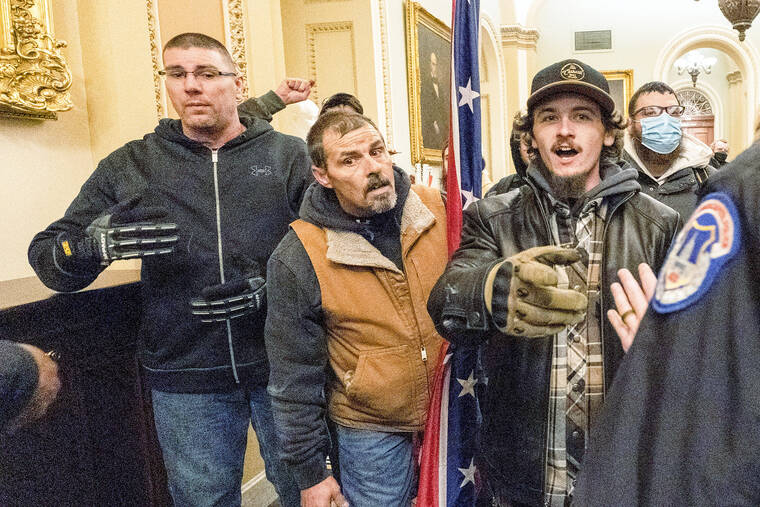 After the rally, Sparks and a co-worker, Joseph Howe, joined a crowd in marching to the Capitol. A cameraman’s video captured Howe saying, “We’re getting in that building,” before Sparks added that if Pence “does his job today, he does the right thing by the Constitution, Trump’s our president four more years.”