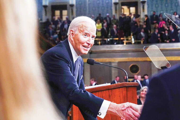 The comments by Biden came as he spoke with Sen. Michael Bennet, D-Colo., on the floor of the House chamber following Thursday night’s State of the Union address.