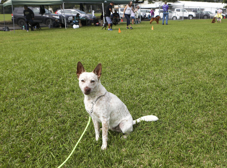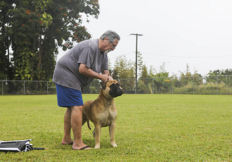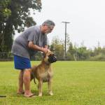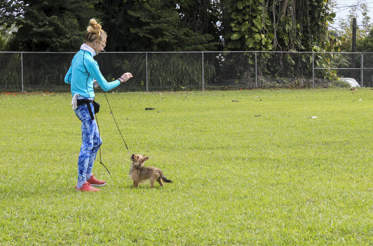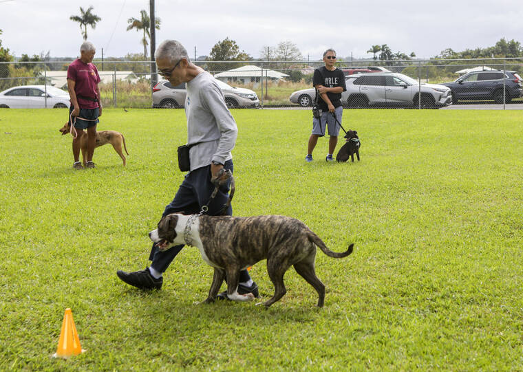 In the park across from St. Joseph School in Hilo, passersby can watch as one dog learns to harness its innate sense of smell while another is training with simple commands for the very first time.
