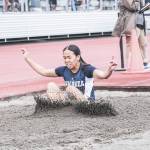 Maya Kaneshiro lands during a long jump event on Saturday at KS-Hawai‘i.