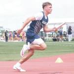 St. Joseph School's Amari Weidemeier places first in the fourth heat of the boys' 400 meter dash, clocking in at 54.74 to place third overall on Saturday at KSH.