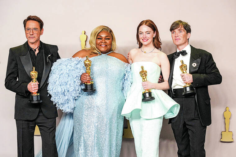 As a film heavy with unease for human capacity for mass destruction, “Oppenheimer” also emerged – even over its partner in cultural phenomenon, “Barbie” – as a fittingly foreboding film for times rife with cataclysm, man-made or not. Sunday’s Oscars at the Dolby Theatre in Los Angeles unfolded against the backdrop of wars in Gaza and Ukraine, and with a potentially momentous U.S. election on the horizon.