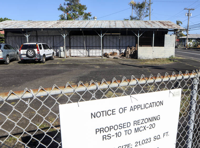 An old property at the corner of Lanikaula and Manono has an application for proposed rezoning in Hilo on Monday, Jan. 29, 2024.