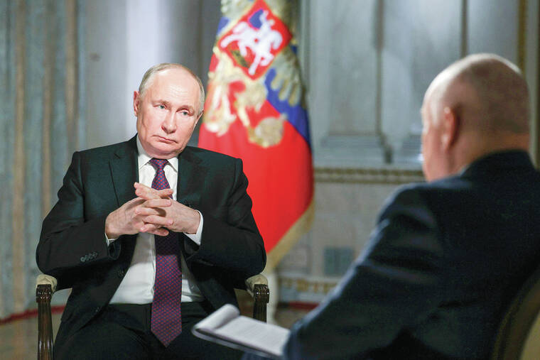 Asked in an interview with Russian state television released early Wednesday if he has ever considered using battlefield nuclear weapons in Ukraine, Putin responded that there has been no need for that. He also noted that he doesn’t think that the world is heading for a nuclear war, describing U.S. President Joe Biden as a veteran politician who fully understands the possible dangers of escalation.