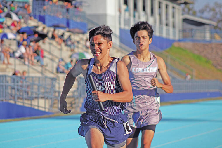 Shane Tominaga of Waiakea raced the 3000-meter run in 9:56.58 — being the only competitor to finish the event in under 10 minutes. His time also qualified for top-1o in Hawaii.