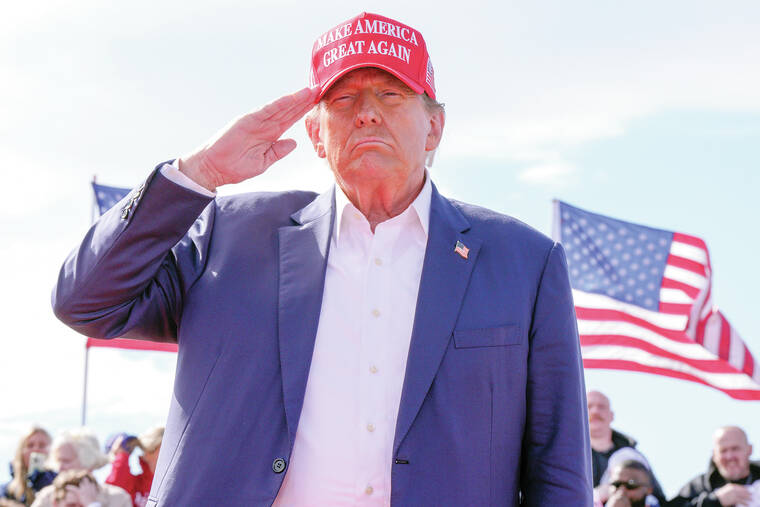 At a weekend rally in Ohio, his first as the presumed Republican Party presidential nominee, Trump stood onstage, his hand raised in salute to the brim of his red MAGA hat, as a recorded chorus of prisoners in jail for their roles in the Jan. 6 attack sang the national anthem.